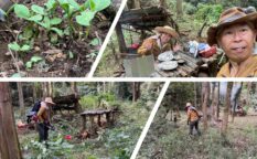ジャングル化した山林頂上の草刈り作業と焚き火で森のキノコご飯を堪能