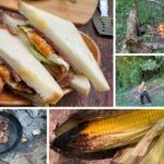 ペール缶の焚き火台の上で、鉄のフライパンで焼きました。
