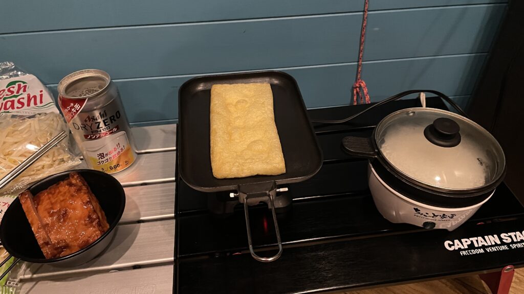 エレクトリックメスティンで、油揚げを炙りました。