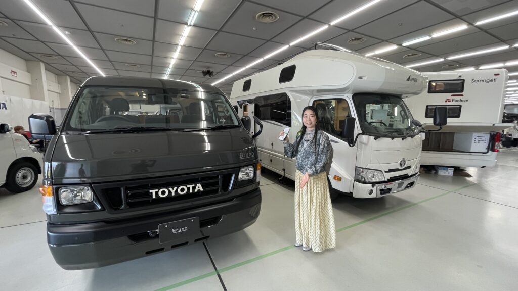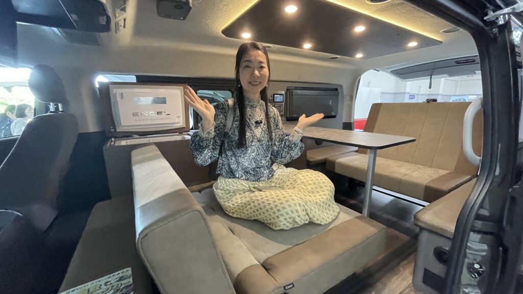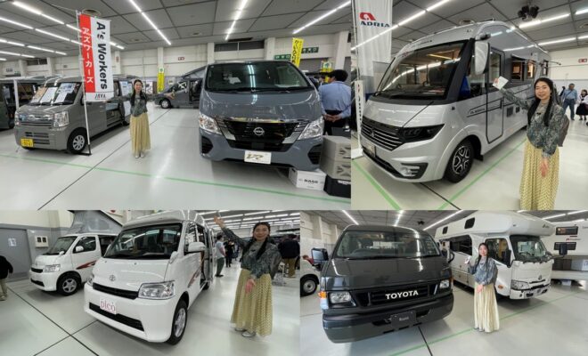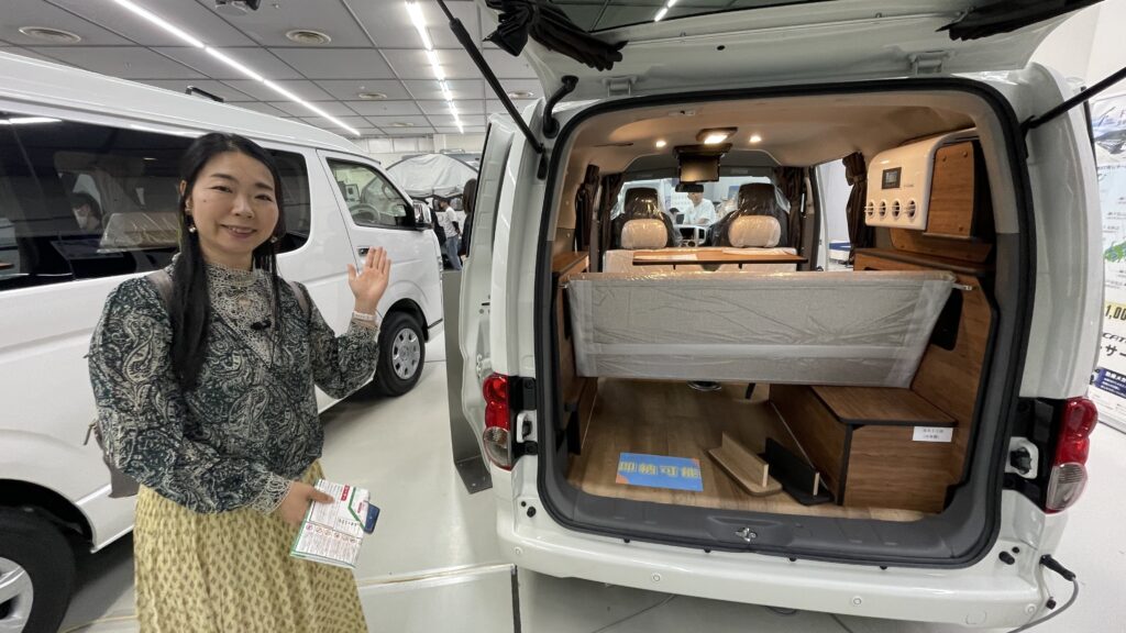 会場の中に入ってくると、たくさんのキャンピングカーが展示されていました。
