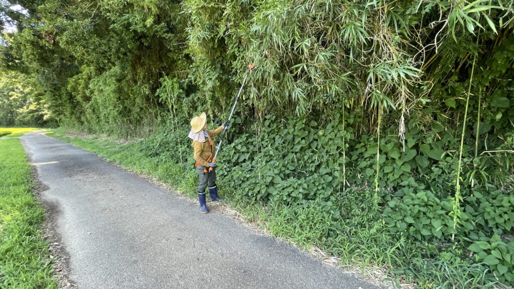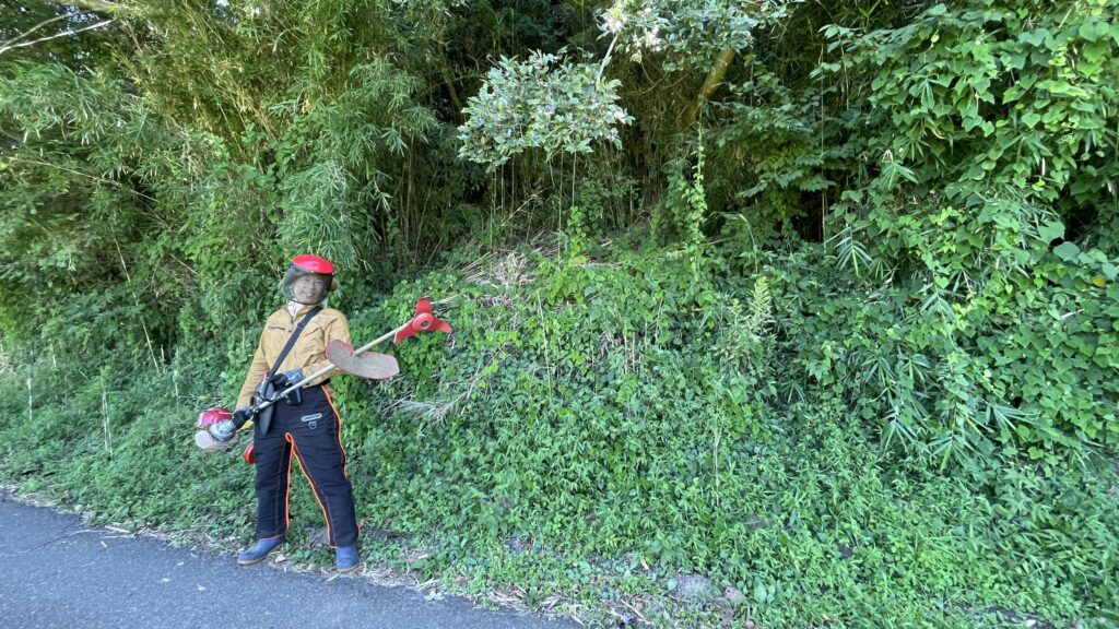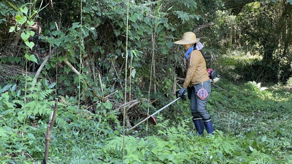 午後からは、山林の農道に面したところの草刈りです。