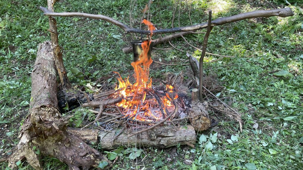 焚き火をします。