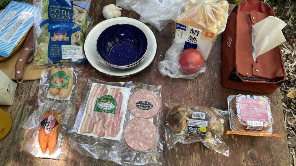 今回は、STSキャンパーさんからお中元でいただいたソーセージとハムで調理。