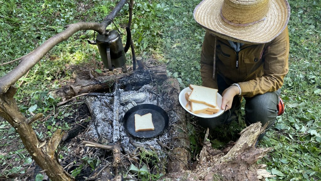 鉄板でパンを焼きます。