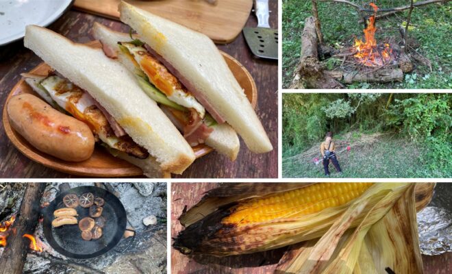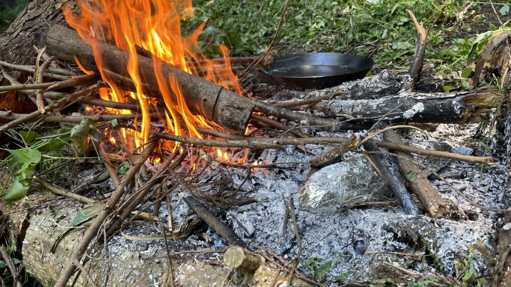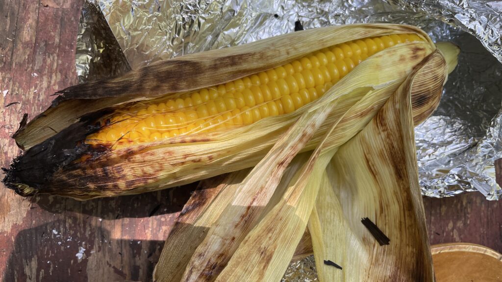 焚き火でトウモロコシのホイル焼きをしました。