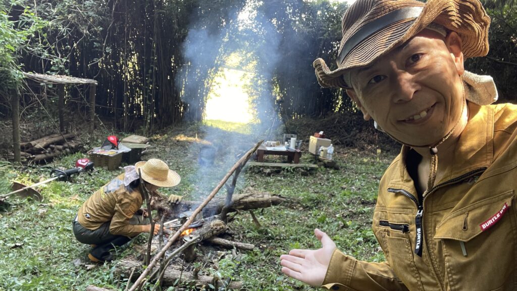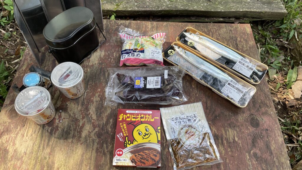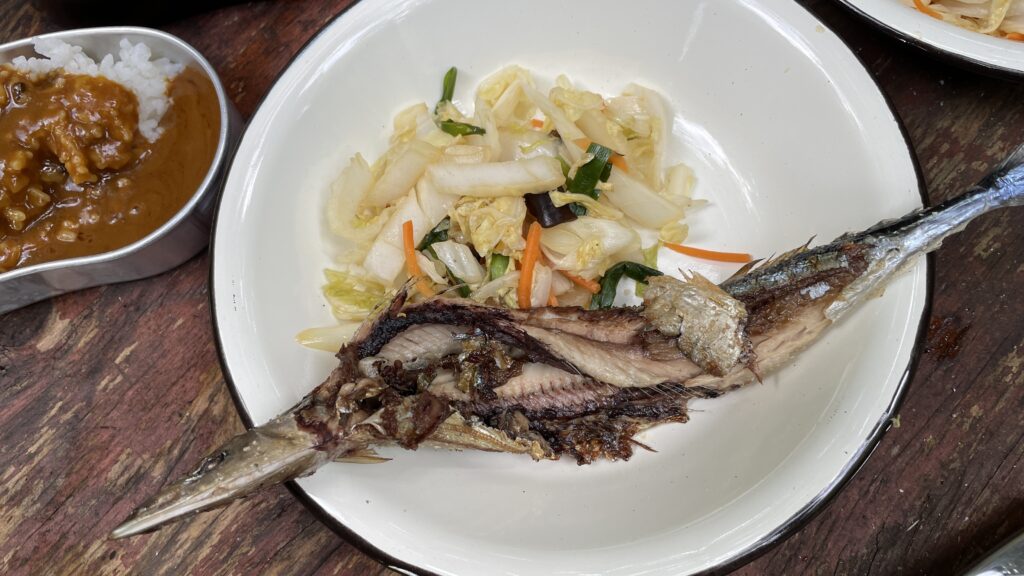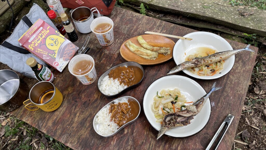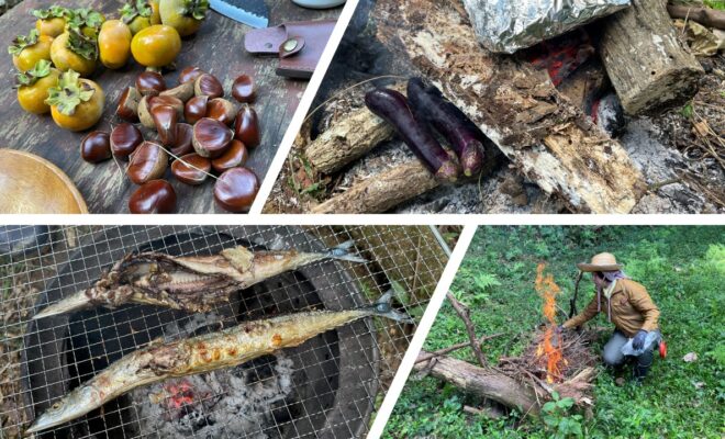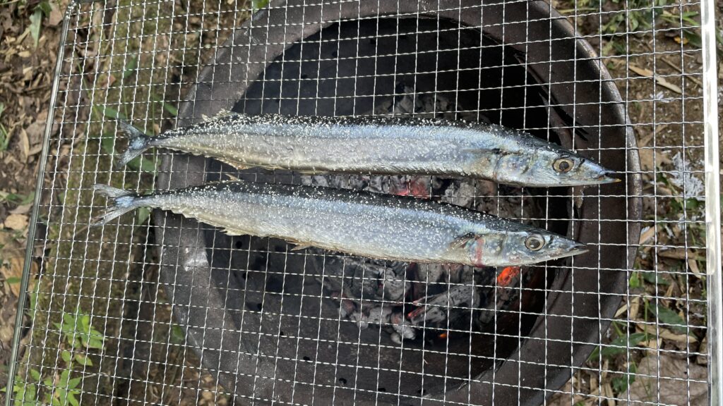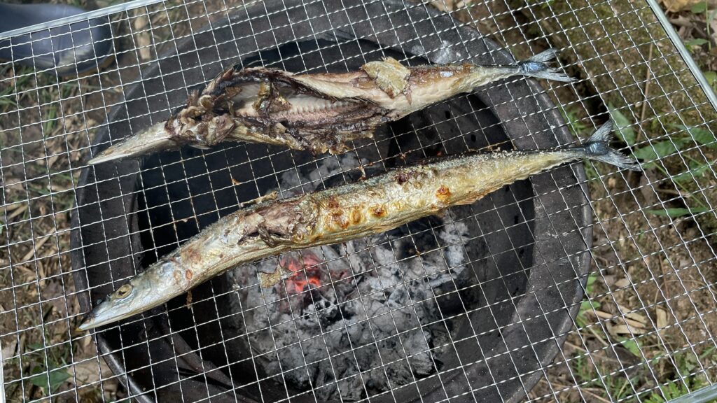 今年も山林に秋がやってきた|サンマの網焼きと焚き火のナス焼きと蒸し野菜とチャンピオンカレーと草刈り