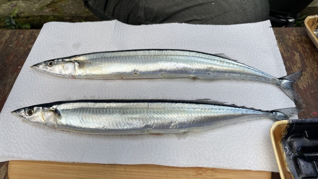 サンマは、ウロコを取って塩を振ってしばらく放置。