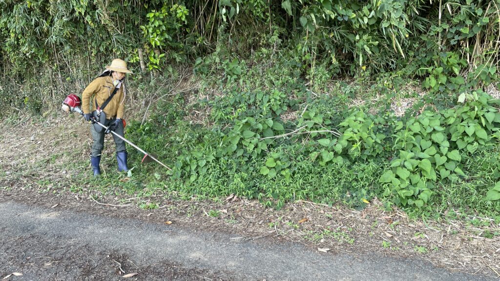 HONDAの4サイクルエンジン刈払機で草刈りします。