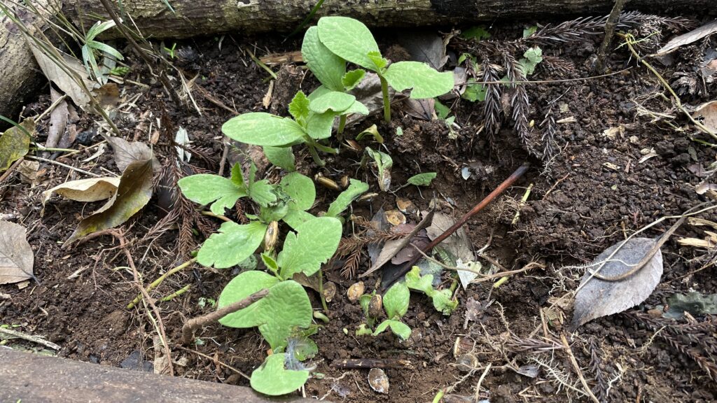 前回、試しに植えてみたスーパーで買ったカボチャの種が発芽していました。