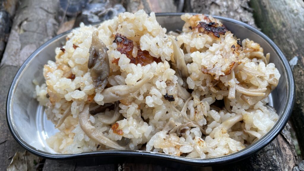 ハンゴウでキノコの炊き込みご飯を作りました。
