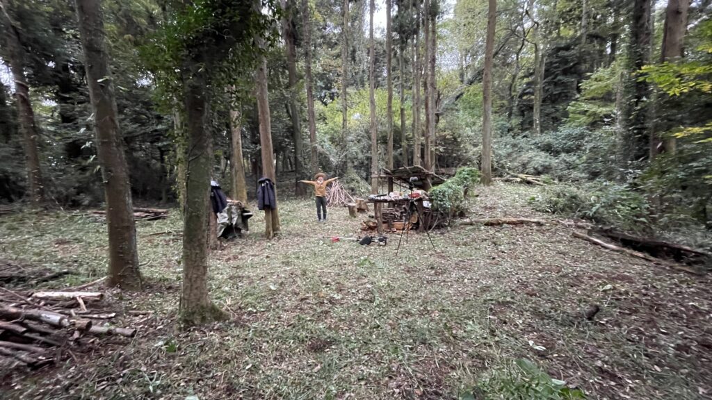 焚き火エリアがスッキリしたので、さっそく焚き火開始です。