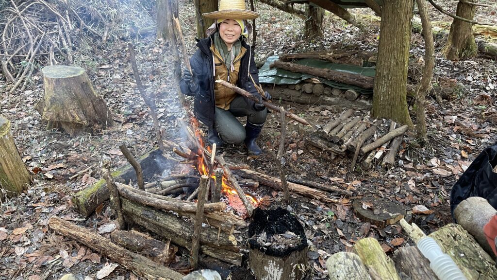 寒いので焚き火をします。