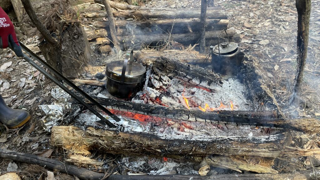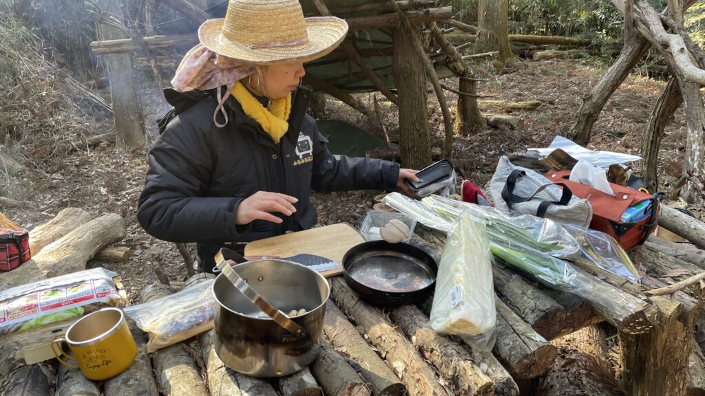 冬は焚き火で温まりながら、暖かい料理が最高ですね。