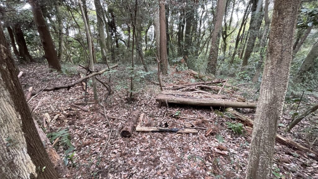 午後は、しばらく使っていなかった山頂奥の「第2焚き火ゾーン」の様子を見に行きました。